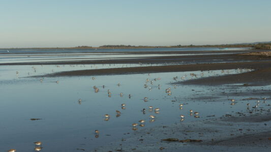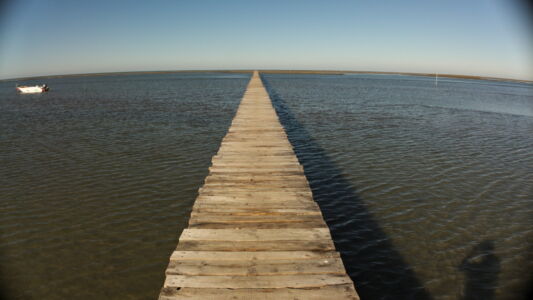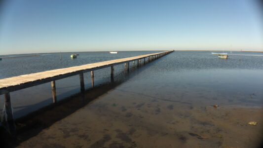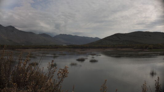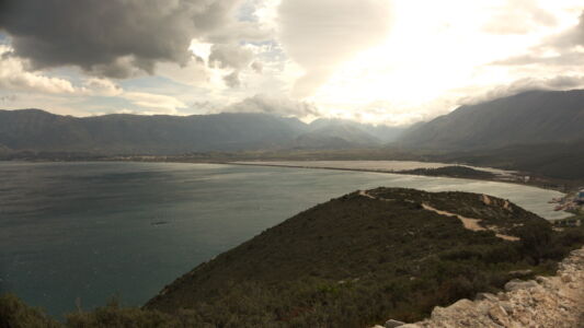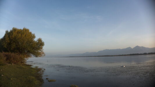 Laissant les affaires dans mon abri, j’ai passé toute une matinée à chercher les pélicans promis par les panneaux du parc naturel de Divjakë. Introuvables. M’en retournant, j’ai fait la très agréable expérience de couper par la lagune. Impression extraordinaire de se retrouver au beau milieu de la mer avec de l’eau seulement jusqu’aux cuisses.