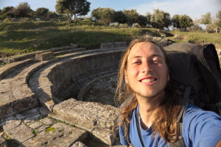De retour à Orikum, j’ai été accueilli par le plus merveilleux, le plus généreux, le plus incroyable des hommes : Papî, ange gardien de tous les voyageurs, qui recueille les âmes en peine dans son restaurant au bord de la mer. J’y ai fait la rencontre de Yuri et Olga, deux voyageurs ukrainiens qu’il hébergeait depuis un mois. Ensemble, nous avons improvisé une petite fête, entre plat traditionnel ukrainien et… crêpes, bien sûr !