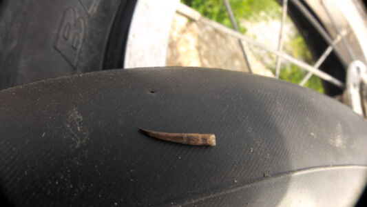 Morisbis a eu sa première crevaison. Et certainement sa dernière : je compte l’abandonner pour continuer à vélo après Athènes. Le jour de son départ deviendra un jour férié, et je suis encore en train de discuter avec lui des modalités de son démantèlement. Il voudrait une pyramide et un sarcophage, mais c’est un peu compliqué.