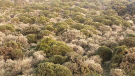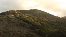 J’ai fait un grand tour dans les montagnes environnantes. Du haut du sommet le plus proche, le regard porte jusqu’à la mer et la côte Nord-Ouest, qu’il parcourt de Kissamos à Chania, sur plus de 40 km. Entre les deux principales sortes de buissons épineux qui recouvrent d’après mon estimation 73 % de la Crète, broutaient une vingtaine de ces chèvres qui, quant-à elles, recouvrent 26,8% de l’île, les 0,2% restants étant recouverts par tout le reste – villages, plantations, routes, plages, rochers, poules et dindons, humains et deux ou trois autres choses insignifiantes.